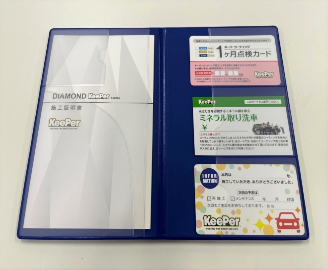 また、当店では全てのキーパーコーティングに施工証明書を発行を実施しております。